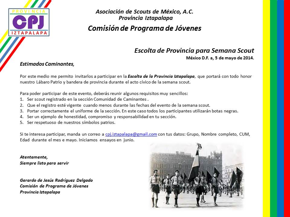 Tienes un alto sentido de honor y amor por tus símbolos patrios, participa en la selección de los miembros que integraran la escolata de la provincia Iztapalapa.